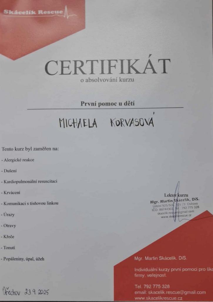 Knihovna - Kurz první pomoci dětem - 23. 9. 2025 Autor: Michaela Korvasová